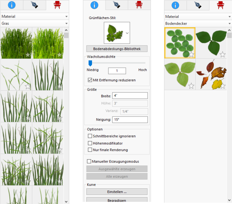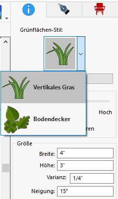Standardmäßig ist Vertikales Gras ausgewählt, Sie können jedoch auch Bodendecker über das Dropdown-Menü auswählen