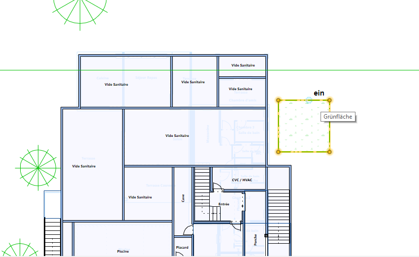Wenn Sie das Werkzeug Grünfläche an einer beliebigen Stelle Ihres Projekts verwenden möchten, befolgen Sie bitte die folgenden Schritte: