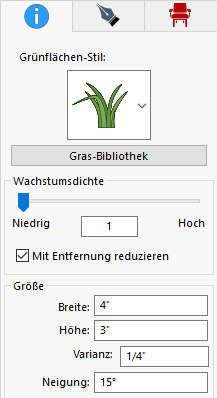 Nachdem Sie den Bereich für die Grünfläche gezeichnet haben, erscheinen die Optionen für die Grünfläche auf der rechten Seite.